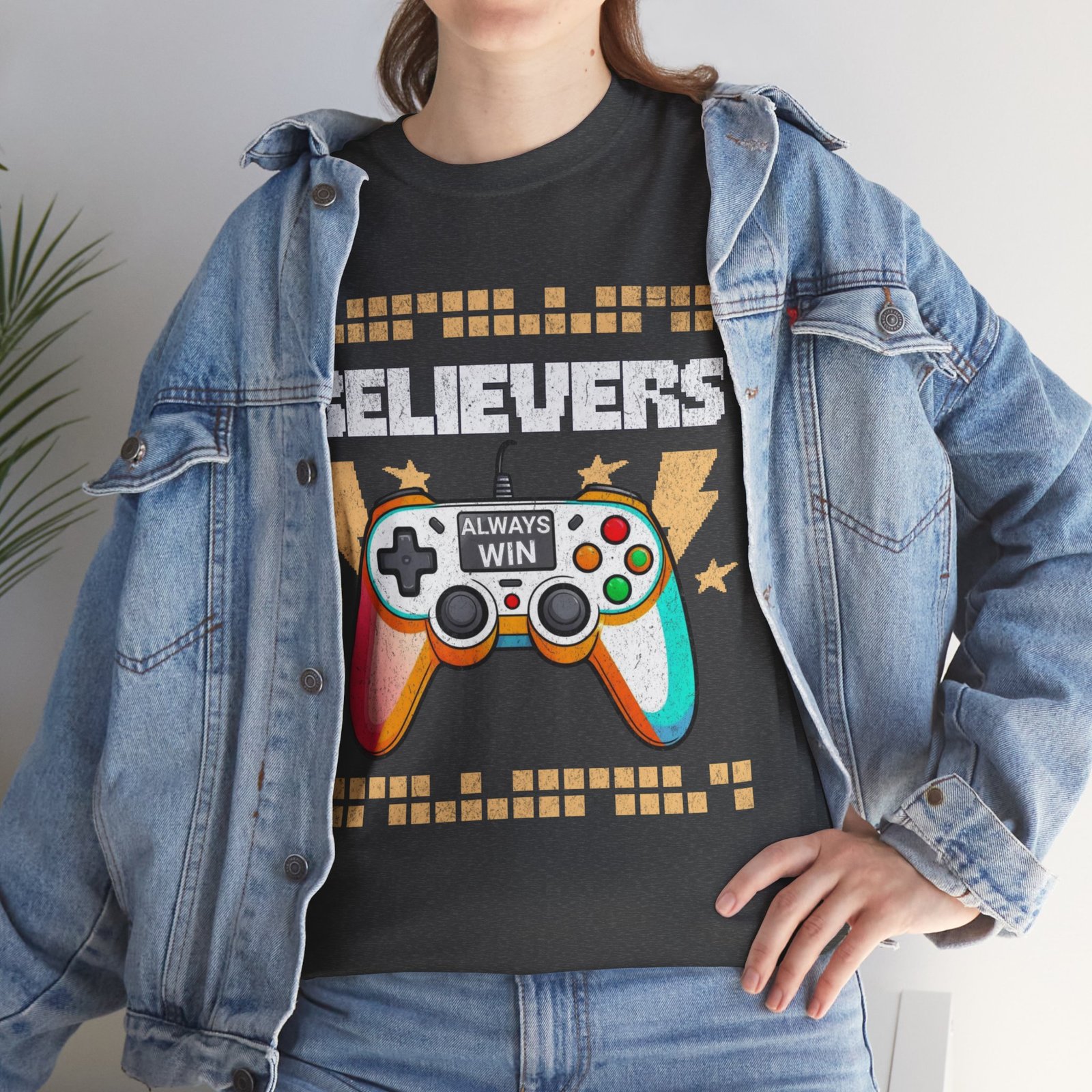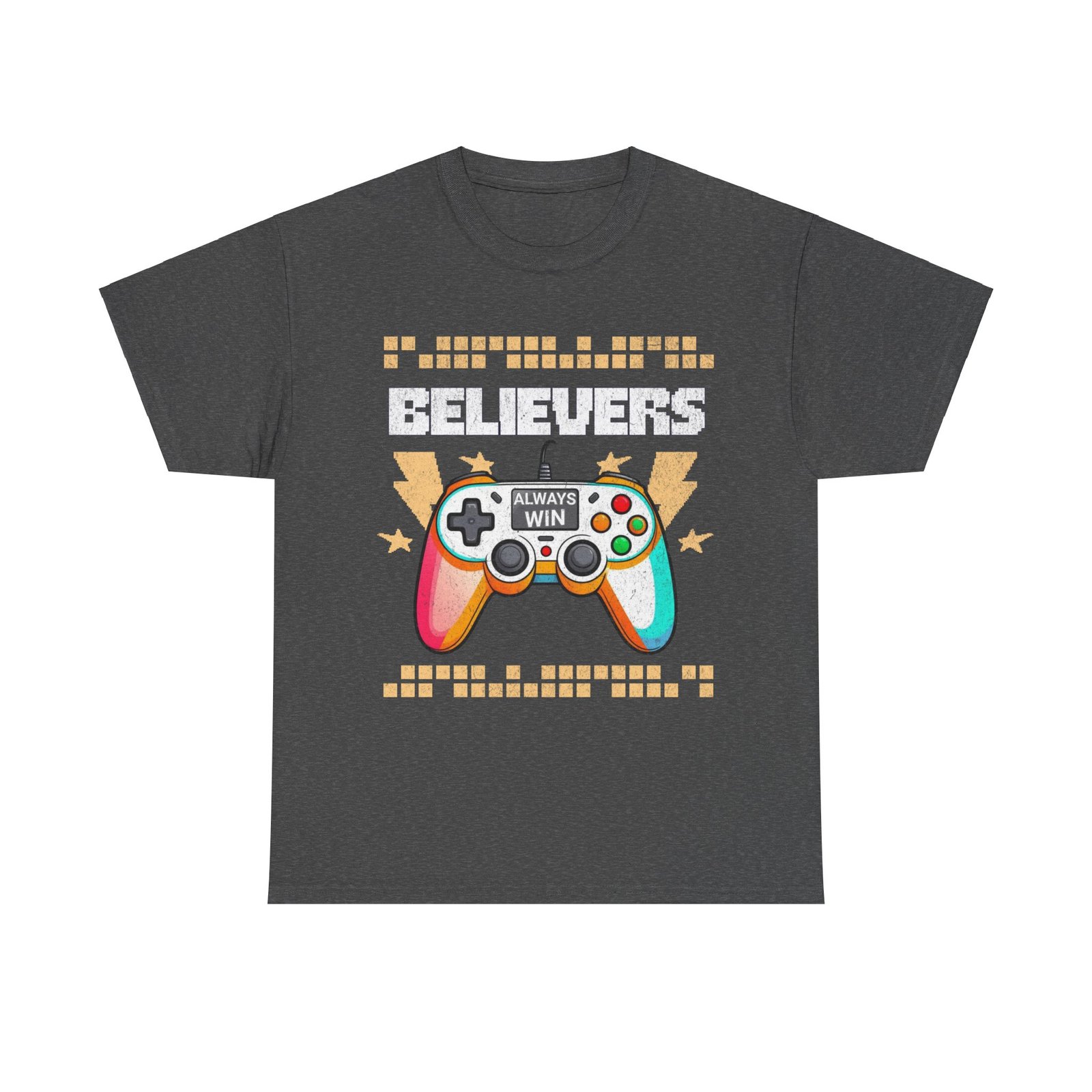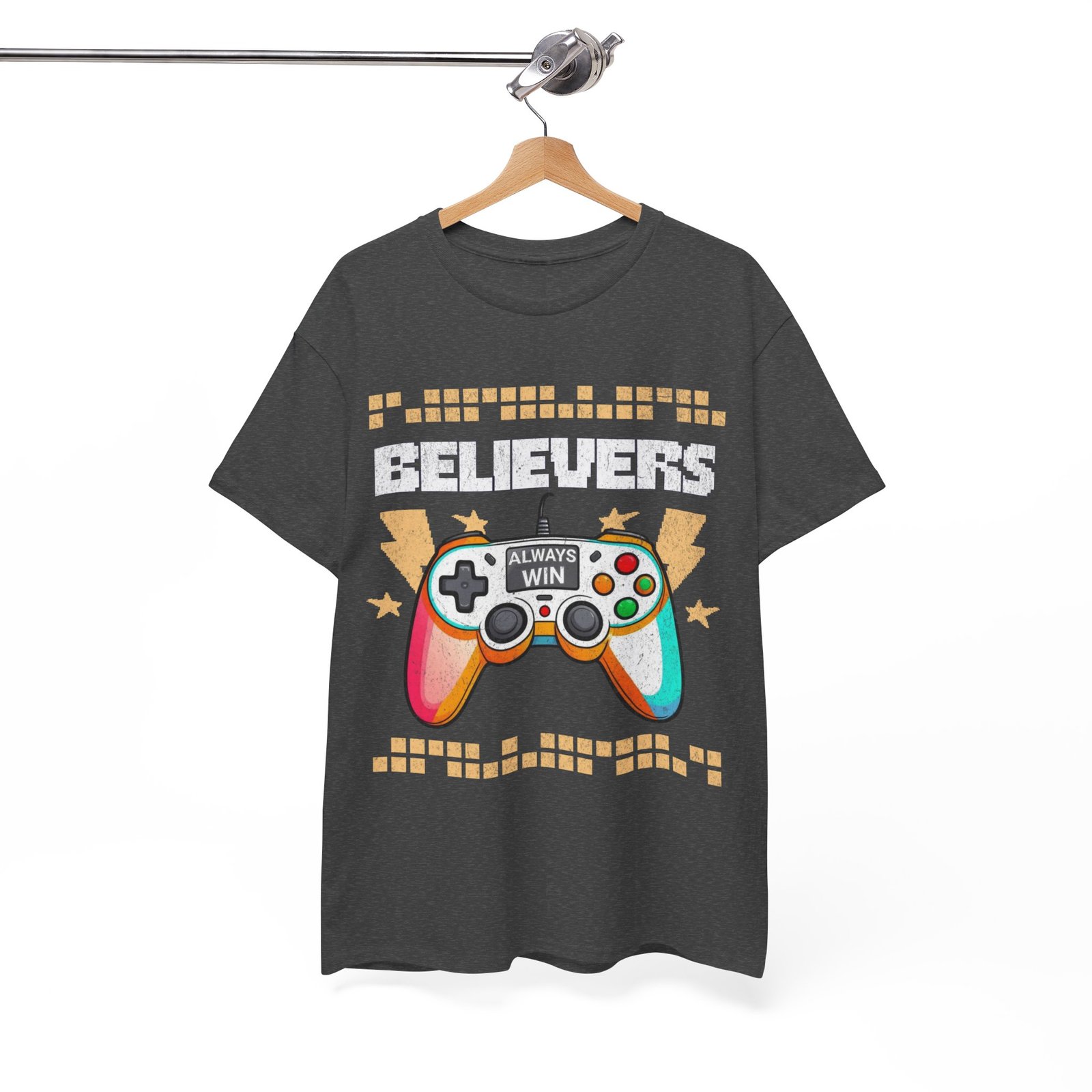 Christian Gamer T-Shirt | Believers Always Win Tee | Faith-Based Gaming Shirt | Inspirational Video Game Tee for Gamers & Believers