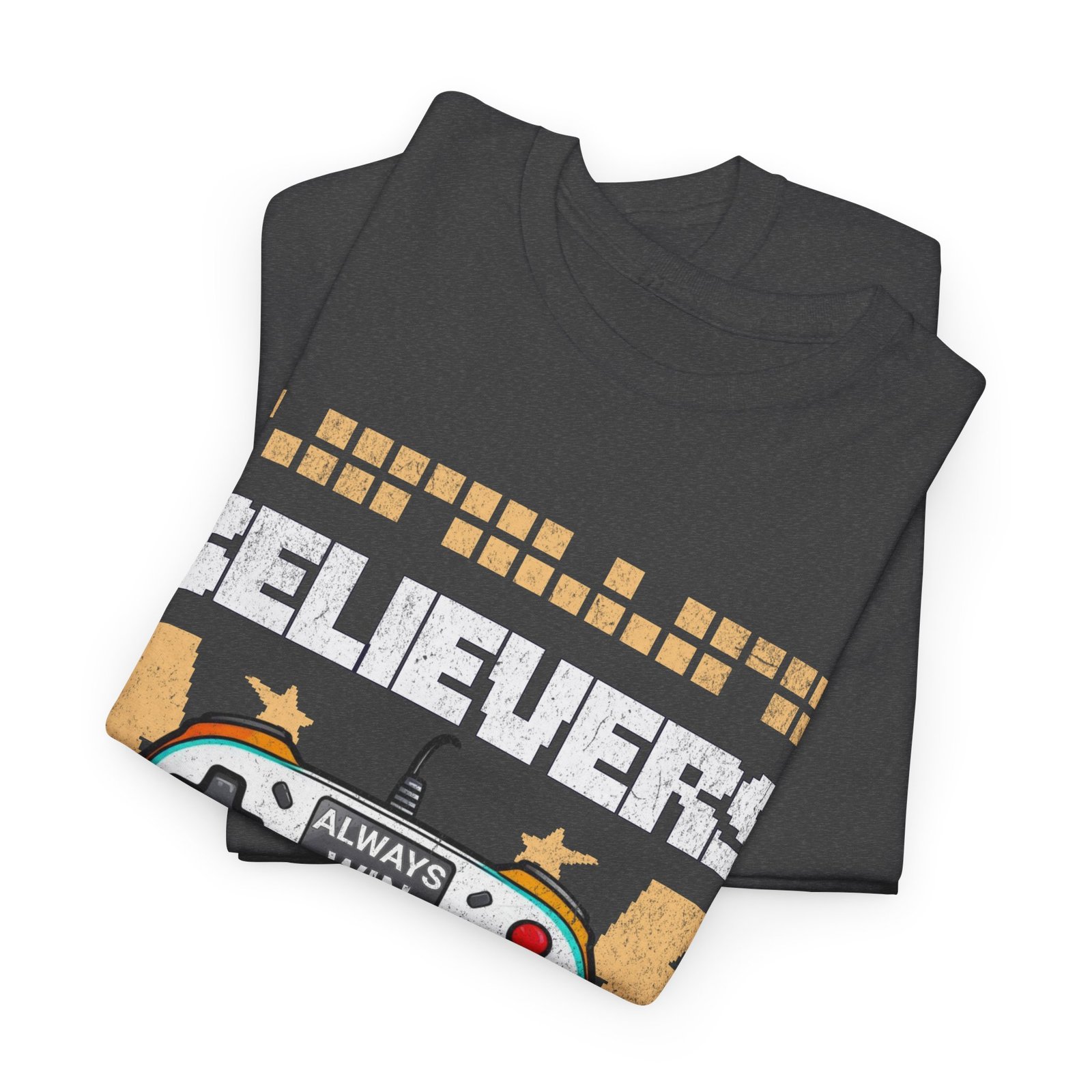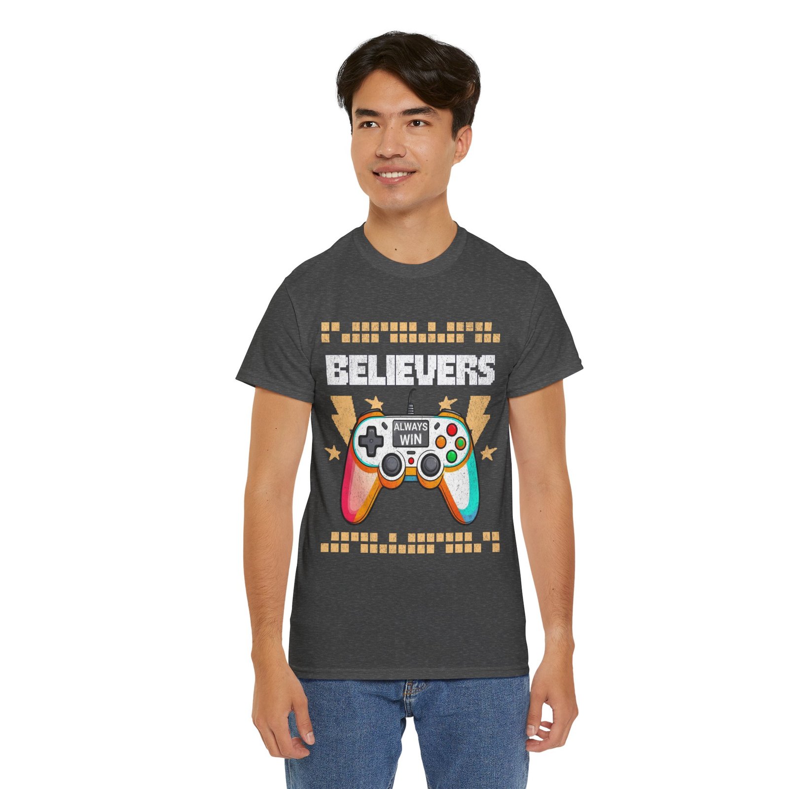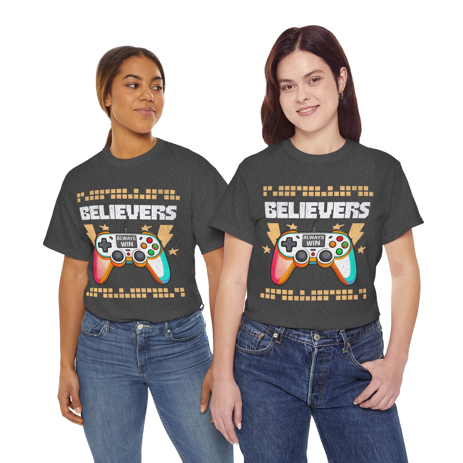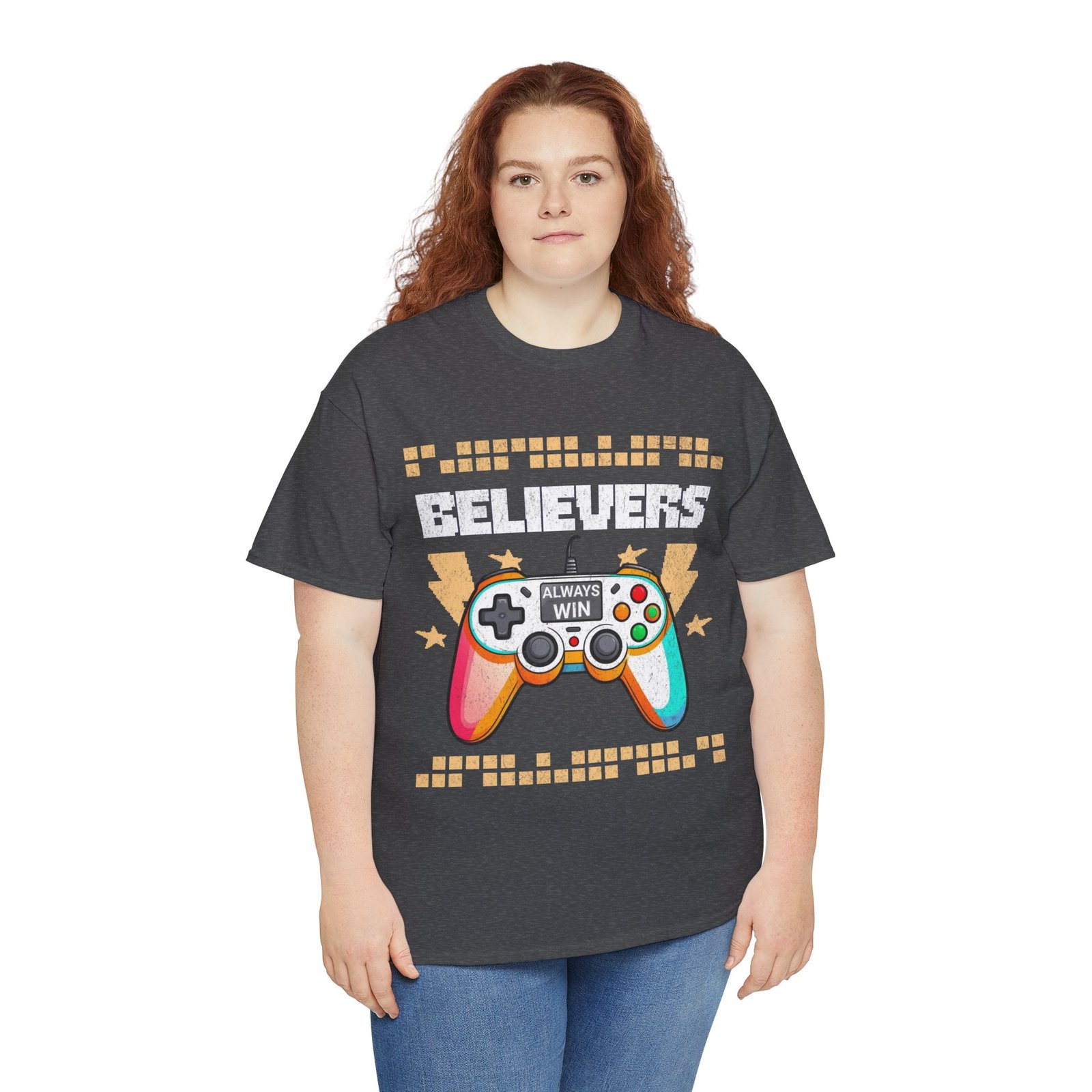 Christian Gamer T-Shirt | Believers Always Win Tee | Faith-Based Gaming Shirt | Inspirational Video Game Tee for Gamers & Believers